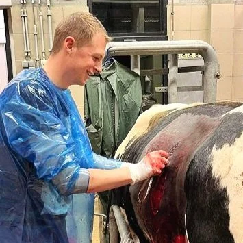So durfte ich schon bald Medikamente anwenden, Tiere drenchen, Trächtigkeits-Untersuchungen und laparoskopische Labmagenoperationen selbst durchführen! Am Ende dieser 4 Wochen war es natürlich schade, wegen der Prüfungen nach Belgien zu gehen, aber seit Sommer 2024 kann ich mit Stolz sagen, dass ich als Tierarzt in diesem starken Team und dieser schönen Praxis angestellt bin.